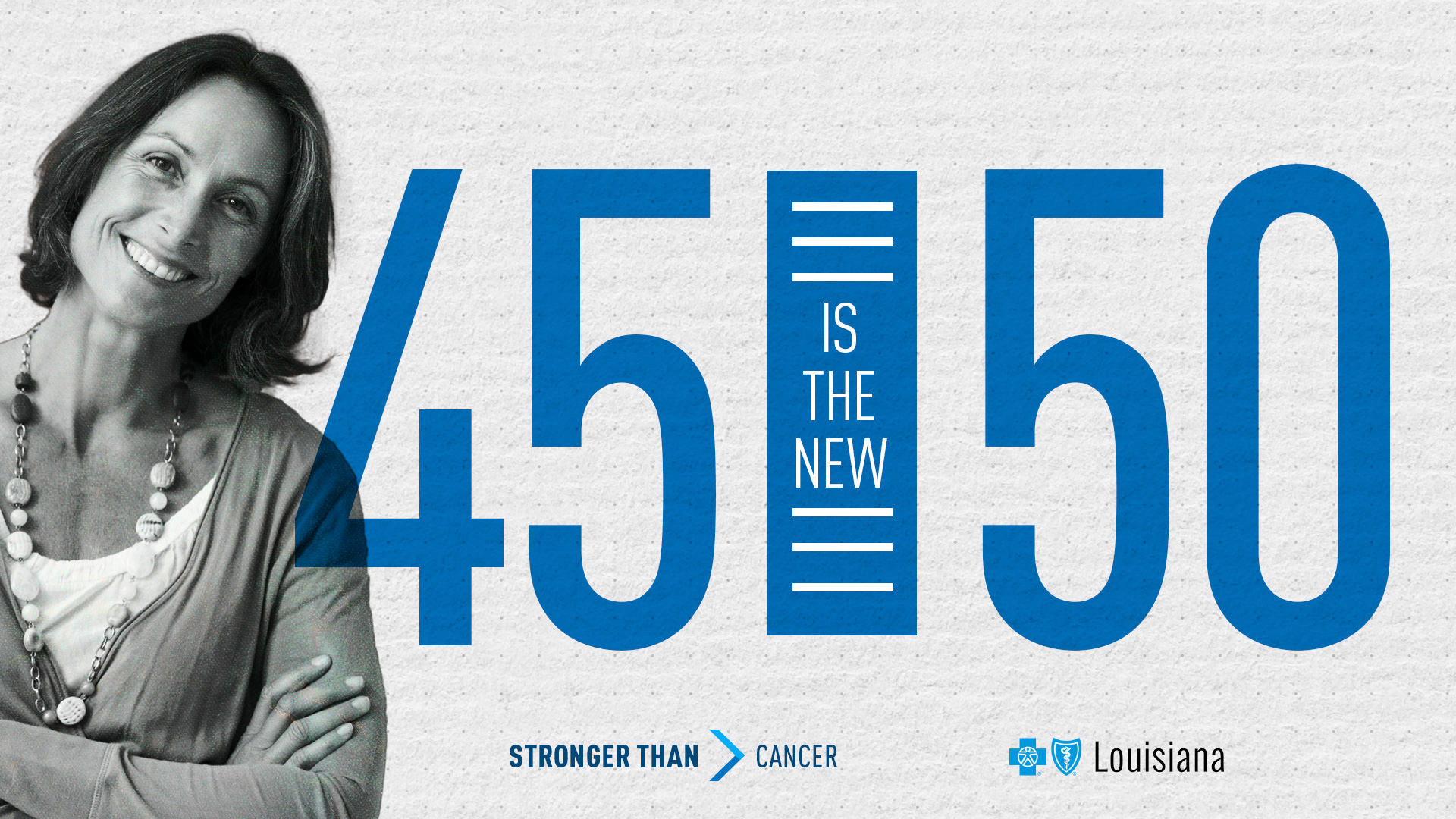 Follow Blue Cross on social media @BCBSLA throughout March to see original graphic designs, videos and other messages to help Louisianians learn how they can be STRONGER THAN Cancer. Download, share or post these messages on your personal social media with the hashtags #StrongerThanCancer | #45IsTheNew50 and inspire your loved ones to get screened. Blue Cross posts regularly on Facebook, Twitter, LinkedIn, Instagram and TikTok.